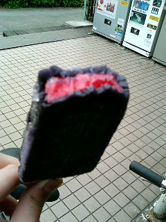 もぐもぐ・・・中身には赤いドロドロが。